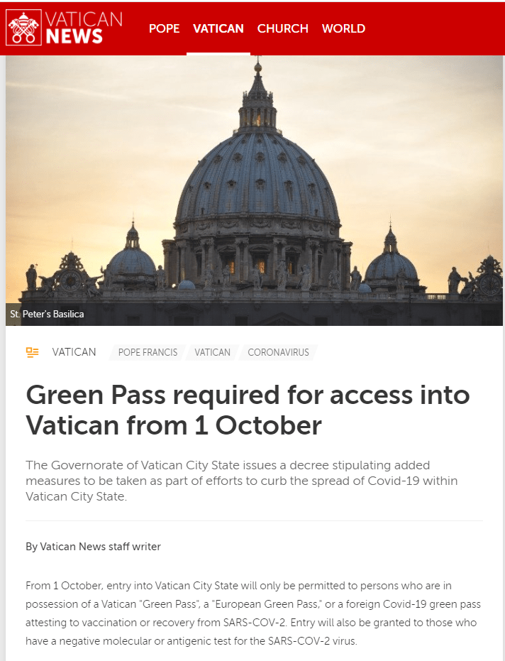This move accomplishes that goal – the exclusion of Catholics from their home. It also sends a massive signal to Bergoglio’s minions to do the same in every parochial property in the world. Sure, there is an “exception,” for those entering the property to attend a liturgy (for now), but they clearly intend to treat unvaccinated people who come to assist mass as lepers.