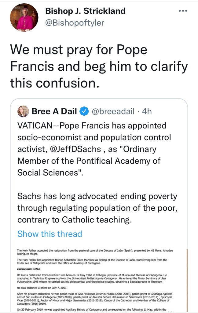 One Tweeter said something to the effect, ‘How can ABp Cordileone be so naïve in 2021?” when the SF prelate insisted that BerGog clarify the confusion of J.Sach’s appointment.